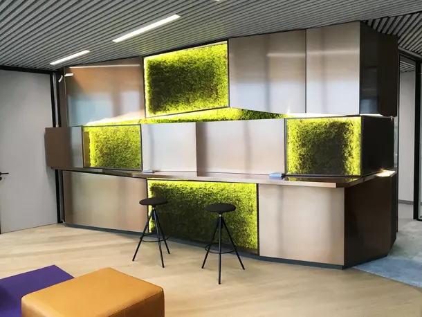 Nos créations s’intègrent parfaitement à leur environnement, qu’elles soient élaborées pour magnifier un comptoir, sublimer un espace d’accueil, structurer un lieu public ou habiller une façade intérieure.
