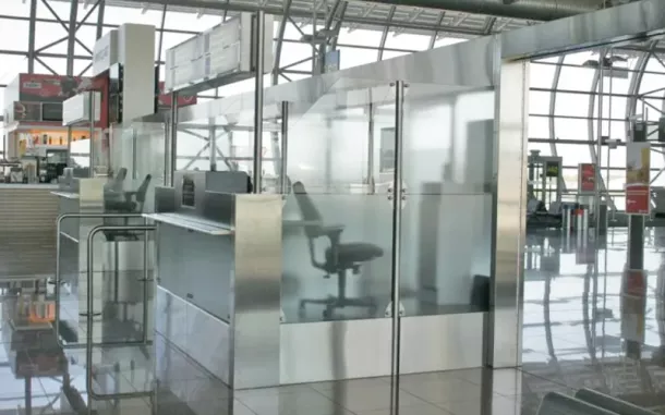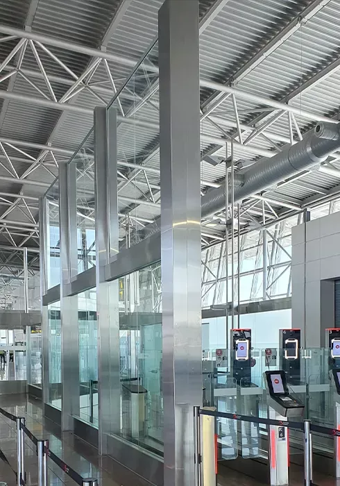 - Habillages métalliques : résistants et faciles d’entretien, parfaitement adaptés aux zones de douane et d’accueil des aéroports ou des gares.