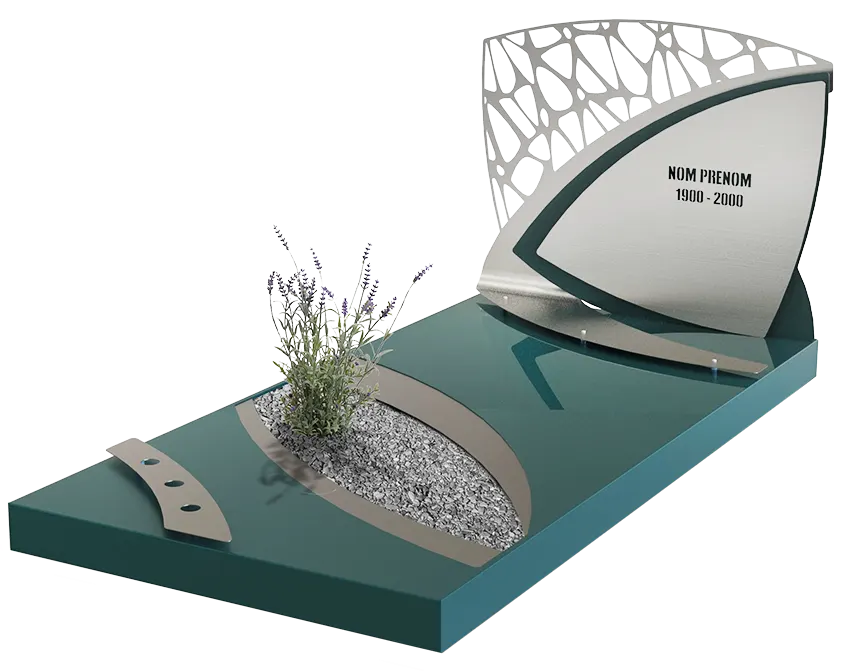 Curva se distingue par ses courbes fluides et superposées, apportant douceur et légèreté au monument funéraire inox. Chaque strate métallique peut être thermolaquée pour créer une esthétique raffinée et personnalisée.