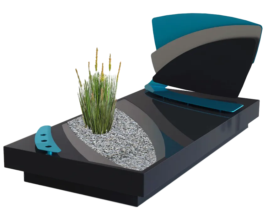 Avec ses volumes cubiques imbriqués, Cubicus propose un monument funéraire moderne et structuré. Les blocs sont personnalisables grâce au nuancier RAL, permettant de composer des créations uniques et colorées.